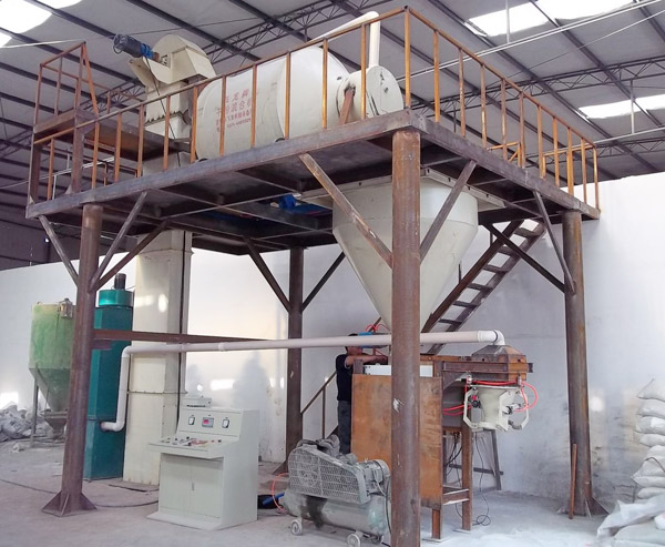 原料倉,自動計量配料及稱重裝置,斗式提升機,待混倉,高效混合機,喂料機,成品倉,自動稱量包裝機,脈沖除塵器,支架爬梯平臺,電器控制柜等組成。